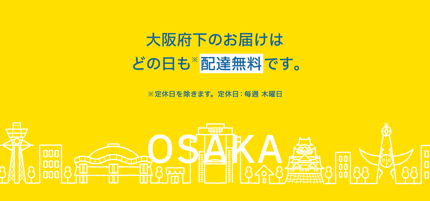 | 全域 | 毎日配送無料(木曜日除く) | 木曜日定休日 |